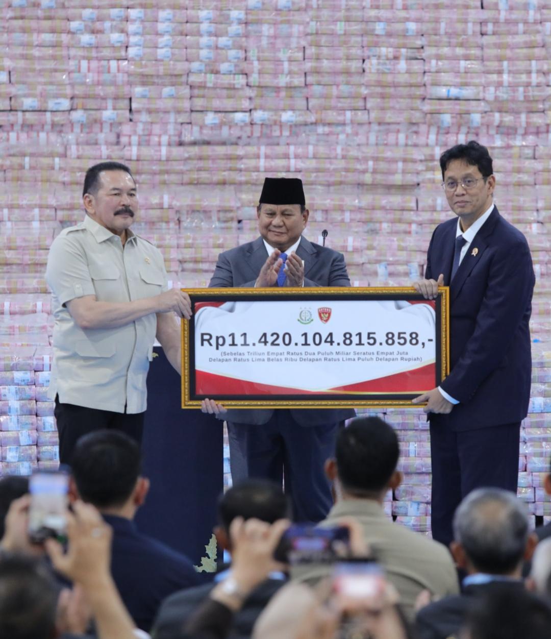 Teras Nusantara, JAKARTA – Kejaksaan Agung Republik Indonesia (Kejagung) menyetorkan dana sebesar Rp11,42 triliun ke kas negara pada 10 April 2026. Penyerahan tersebut disaksikan langsung oleh Presiden Prabowo Subianto.