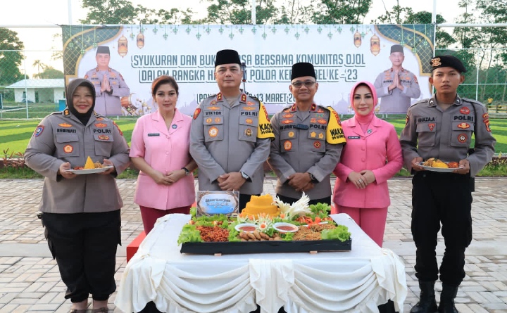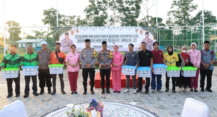 Pangkalpinang, Teras.nusantara.com, Polda Bangka Belitung menggelar buka bersama dengan komunitas pengemudi ojek online Pangkalpinang, Jumat (13/3/26). Momen itu juga berbarengan dengan syukuran Hari Jadi Polda Babel ke 23 tahun.