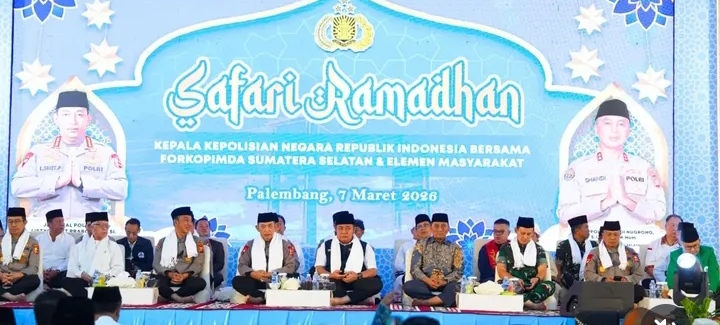 Pangdam II/Sriwijaya, Mayjen TNI Ujang Darwis, M.D.A., menghadiri kegiatan Safari Ramadhan yang diselenggarakan bersama Kapolri Jenderal Polisi Listyo Sigit Prabowo di Masjid Assa’adah Mapolda Sumsel, Palembang, Sabtu (07/03/2026). Hal ini mempertegas soliditas antara TNI dan Polri dalam menjaga stabilitas di wilayah Sumatera Selatan.