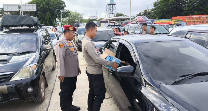 Bangka Barat, Antrean panjang yang sudah berlangsung hingga berhari-hari di Pelabuhan Tanjungkalian, Mentok, tak menyurutkan semangat para pemudik untuk tetap bertahan demi bisa menyeberang ke luar Pulau Bangka. Di tengah penantian itu, secercah kehangatan hadir dari personel Pos Pelayanan (Posyan) Polres Bangka Barat. Kamis 19 Maret 2026