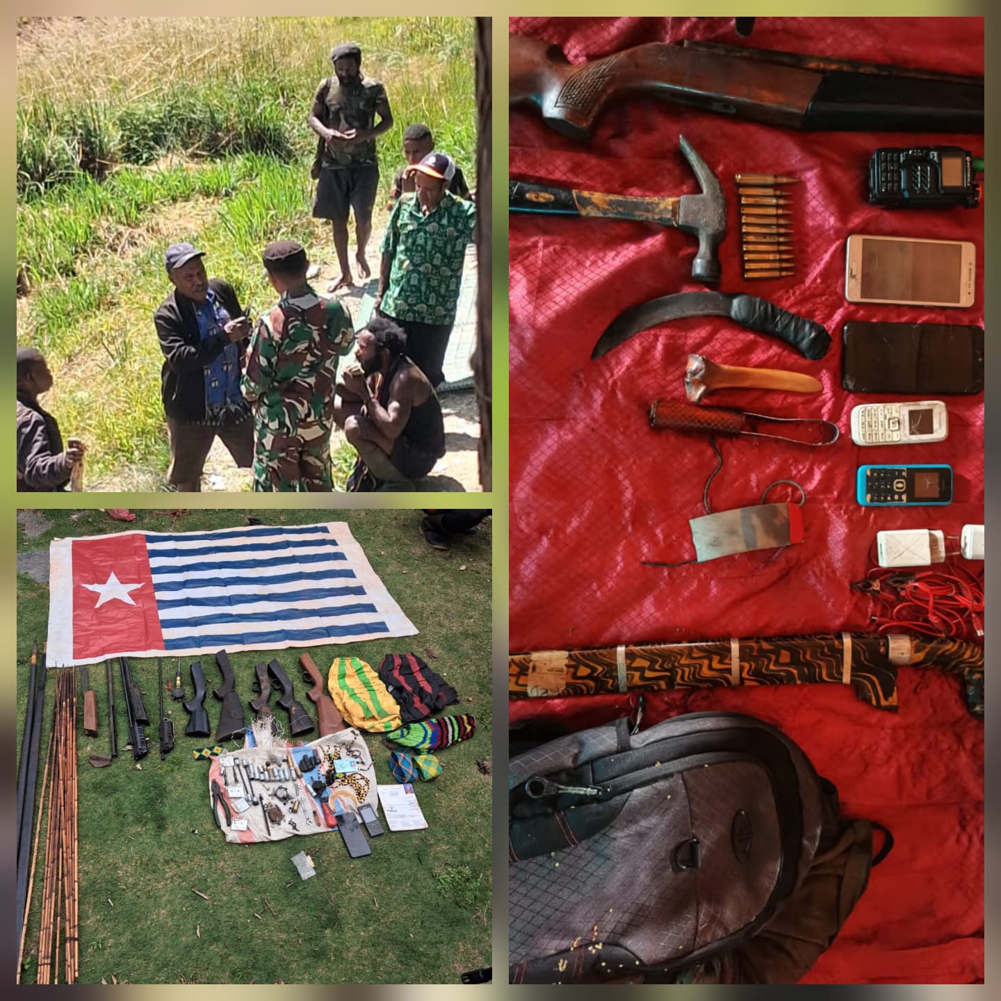 – Atribut & Dokumen: Bendera OPM, dokumen identitas, serta perlengkapan pribadi lainnya.