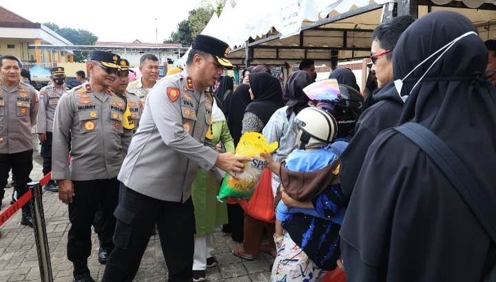 Pangkalpinang, Polda Bangka Belitung menggelar Gerakan Pangan Murah (GPM), Jumat (13/3/26). Kegiatan dilangsungkan di Taman Bhaypark bertujuan menjaga stok dan stabilitas harga pangan serta membantu masyarakat.
