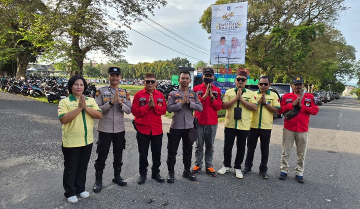 Kolaborasi antara Polres Bangka Barat dan Pemuda Katolik menjadi gambaran nyata kuatnya toleransi antarumat beragama di Kabupaten Bangka Barat saat pelaksanaan Salat Idulfitri 1447 Hijriah, Sabtu (21/3/2026).