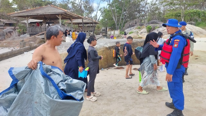 Petugas turut memberikan himbauan kamtibmas kepada masyarakat yang sedang berwisata, agar selalu menjaga keselamatan diri, mengawasi anak-anak saat bermain di pantai, serta tetap waspada terhadap barang bawaan guna menghindari hal-hal yang tidak diinginkan.